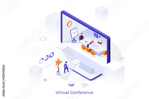 Online osteopathy medicine courses and training, flat vector isometric illustration. Osteopathy, chiropractic, manual therapy. Career, distance learning, online education.
