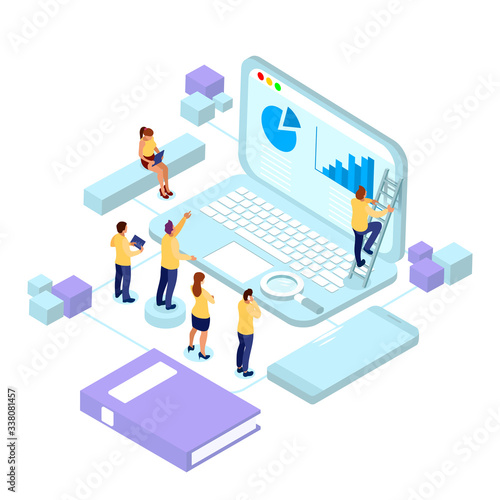 Online osteopathy medicine courses and training, flat vector isometric illustration. Osteopathy, chiropractic, manual therapy. Career, distance learning, online education.