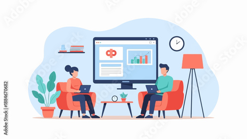 Online photo editing and retouching service, flat vector illustration. Male characters photographers retouching real life photo of young girl.
