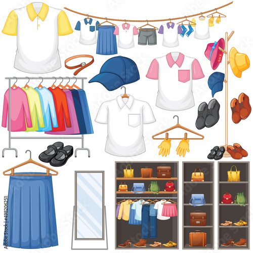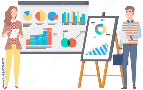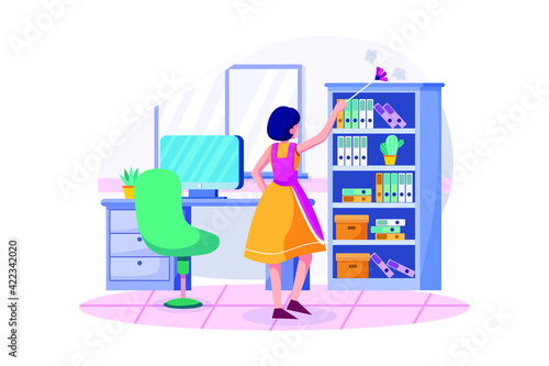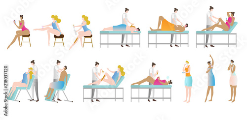 Online sewing masterclass, vector flat illustration. Seamstress or tailor sewing blue dress in front of laptop computer. Sewing video tutorial, course, distance learning, video conferencing technology