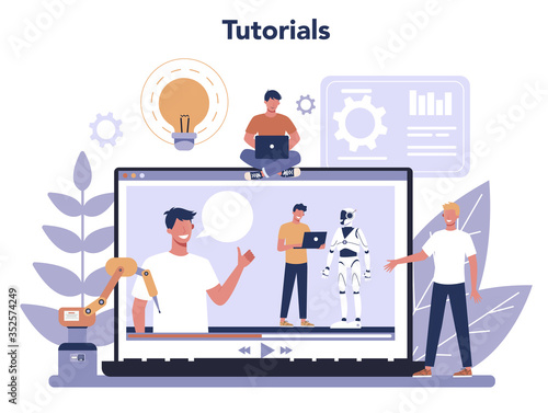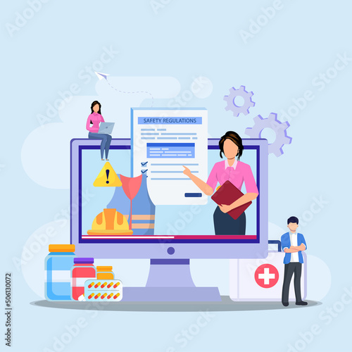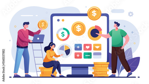 E-commerce and online shopping, vector illustration. Huge laptop and micro male and female characters buying clothes on the internet. Online payment, delivery services composition for website page etc