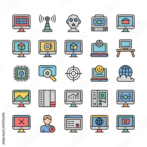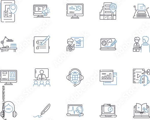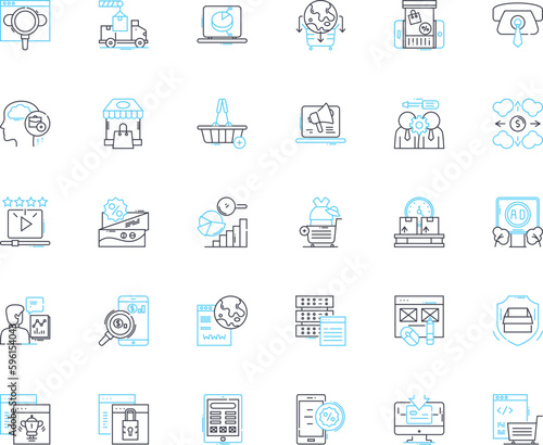 Vector seamless pattern with decorative online shopping symbols, icons. E-commerce background, wrapping paper texture thin line art flat style design.