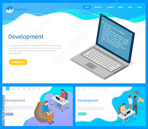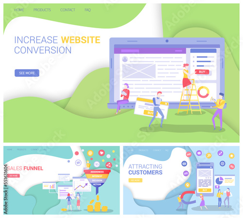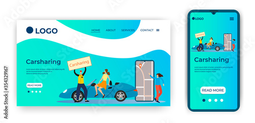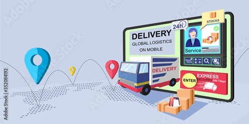 Online shopping landing page template for website and mobile site development. Vector isometric smartphone, woman with shopping cart with bags, gift box. Mobile marketing, e-commerce web page concept.