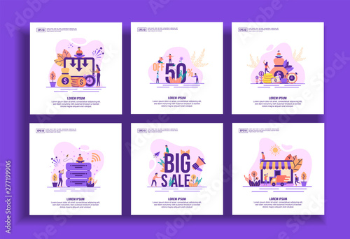 Online store, mobile shopping, ecommerce, internet purchases, advertising, guarantee. Mobile app screens. Vector banner template for website and mobile development. Web site design illustration.