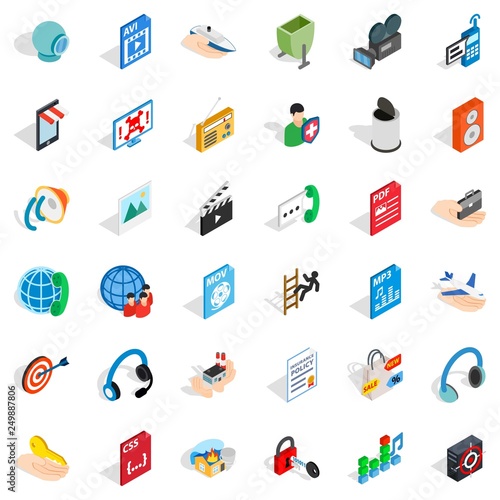 Internet store isometric icon set, flat vector isolated illustration. Sales and discounts, Black friday, electronic payment, ecommerce, gift voucher, loyalty program. Online shopping.