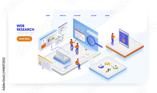 Online teaching and tutoring, flat vector isometric illustration. Webinar, online education, seminar, distance learning, remote teaching.