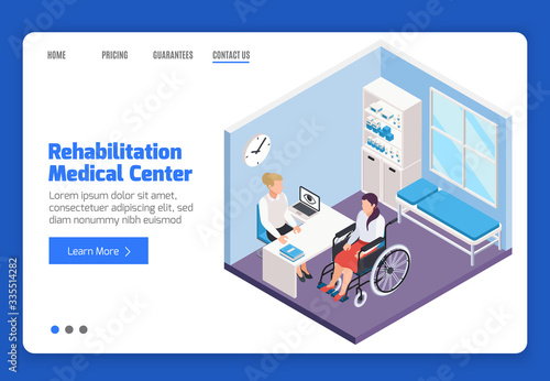 Online training landing page website template. Vector isometric illustration. Online webinar, e-learning, distance education, video tutorials concept.