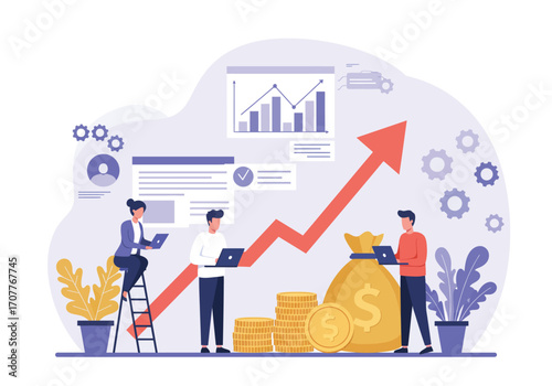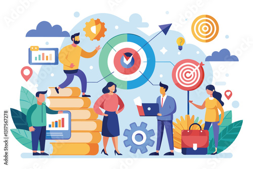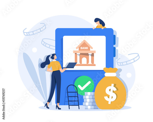 Online tour booking concept vector illustration. Travel agency search and flight booking composition with micro male and female characters and huge passport for web banner, website page etc.