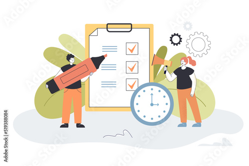 Girl with headphones and smartphone doing warrior 2 yoga pose at home together with online coach on mobile screen, vector flat style design illustration. Online classes for yoga and meditation.