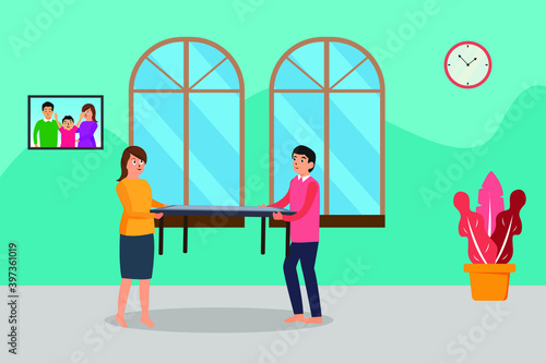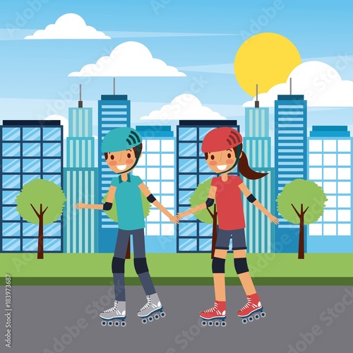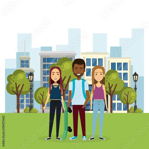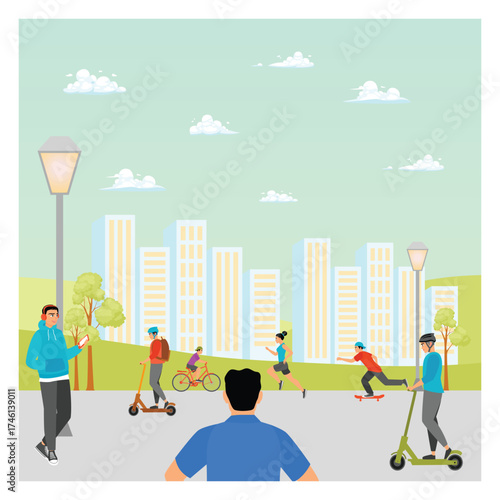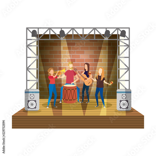 Vector illustration of musicians keyboardist, guitarist and singer performing on outdoor concert stage. Open-air concert, music festival concept flat style design element.