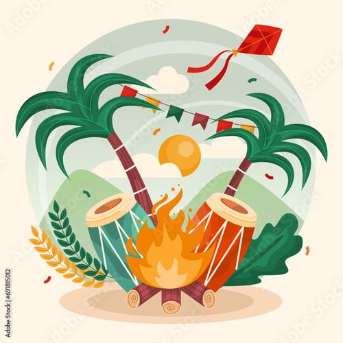 Paper cut gift box with Christmas symbols. Vector illustration in paper art craft style. Open magic box with Christmas tree, wreath, ball, bell, holly berry, mitten, fireworks, candy cane.