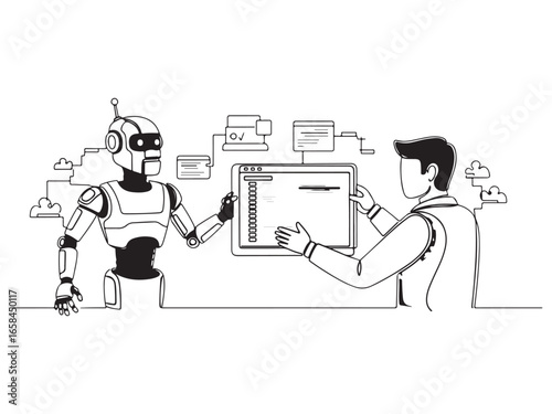 Huge human brain with keyhole, micro characters business people holding big key, looking through telescope, vector flat style design illustration. Open mind with key concept.