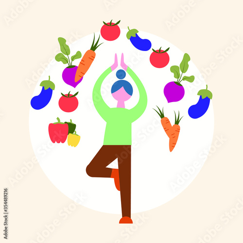 Open recipe book, pot with ladle, cute vegetables, flat vector illustration. Happy cartoon kohlrabi, broccoli, onion, carrot, pumpkin, garlic and red pepper with faces. Hand lettering. Cooking book.