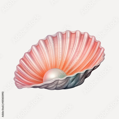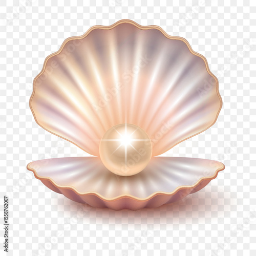 Opened pearl sea shell vector icon isolated on white background. Shellfish mollusk. Marine jewelry