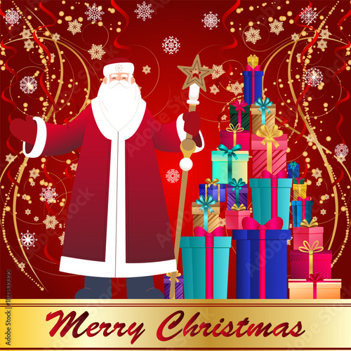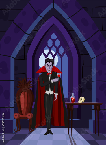 Opera theater scene with red curtains. Symphony orchestra performing on stage, vector illustration. Conductor and musicians playing violin, double bass, flute, tuba. Classical music concert.
