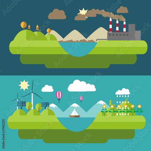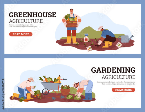 Organic product landing page design, website banner template set, flat vector illustration. Female farmer working on poultry farm. Domestic fowl, chickens, geese raised for meat and eggs. Farming.