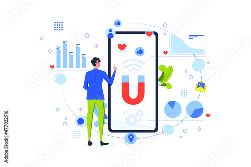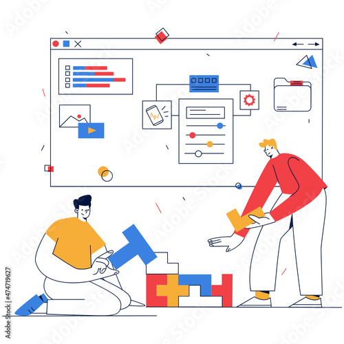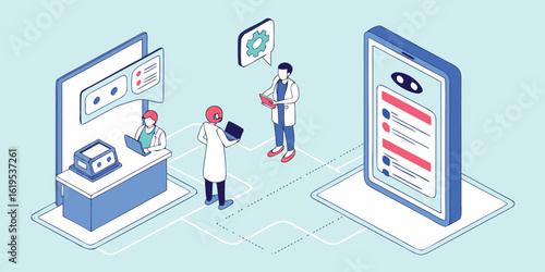 Osteopathy session and treatment. Tiny doctor characters examining scan of patient spine, flat vector illustration. Man having bone desease. Osteopathic medicine.