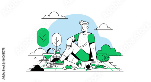 Vector illustration of young man giving glass of water to lying on the ground elderly man. Help concept design element in flat style.