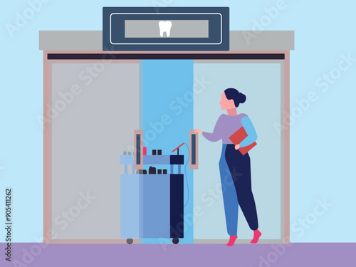 Vector illustration of cook male putting meal into the oven. Restaurant kitchen oven flat style design element.