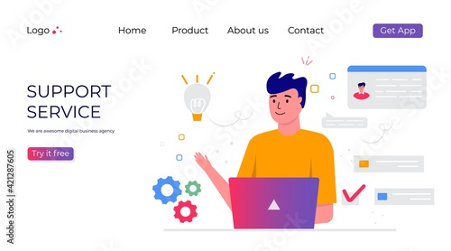 Overweight concept vector website template, web page and landing page design for website and mobile site development. Man eating junk food burger, french fries, drinking soda while watching tv.