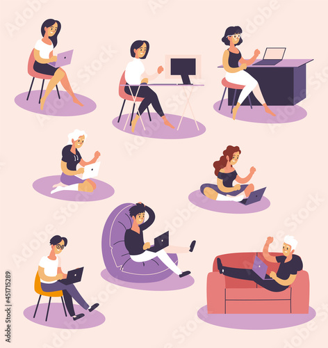 Stressed exhausted tired business people at workplace, vector flat isolated illustration. Overworked stressed people sitting at tables, arguing with each other, holding help sign. Emotional burnout.