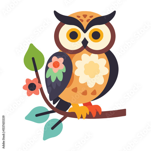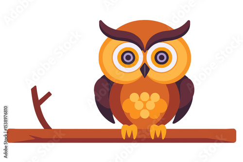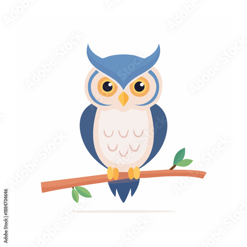 Owl sleep vector. Cartoon cute night bird icon illustration. Sleepy animal on tree branch. Funny character sleeping isolated on white background