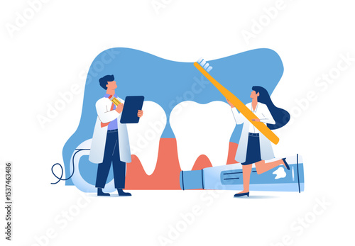 Tiny people artists with big painting tools paintbrush, paint tubes, vector illustration. Art school, studio, artistic creative occupation concept for web banner, website page etc.