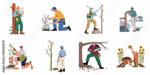 Paparazzi icon set. Vector illustration of professional male and female photographers in different poses taking photo using professional equipment.