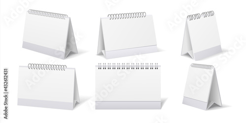 Vector realistic illustration of white blank table calendars isolated on white background. Desk calendar mockups set.