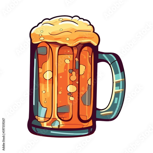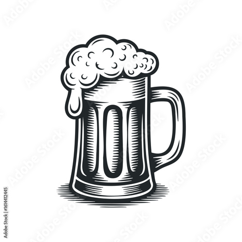 Paper cut beer mug with foam, wheat ears, hops and realistic aluminum can, vector illustration. Alcohol drink branding mockup, advertising.