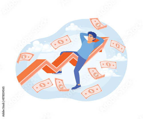 Paper cut craft style successful businessman winner silhouette holding trophy cup, vector illustration. Financial growth, earning, income, business achievements.