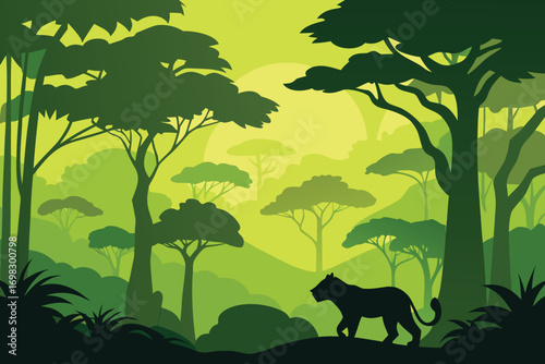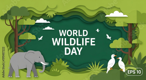 Paper cut dino silhouettes and nature landscape. Triceratops dinosaur, vector illustration. Kids education. Archeology, history.
