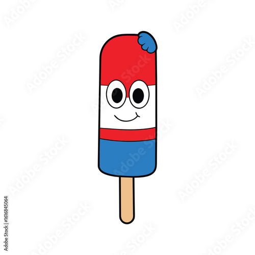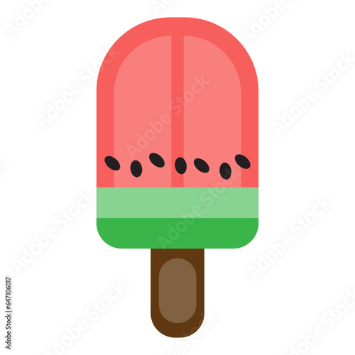 Paper cut ice cream on stick with strawberries, tropical leaves, realistic plastic packaging pouch, vector illustration. Fruit popsicle, summer sweet frozen dessert branding mockup, advertising.