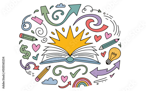 Layered paper cut craft style man head silhouette with abstract vibrant shapes, music notes, paintbrush and palette, vector illustration. Creative mind, art, thinking concept. Creative artist logo.