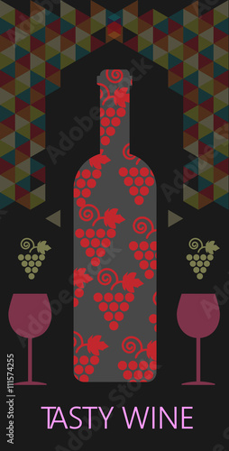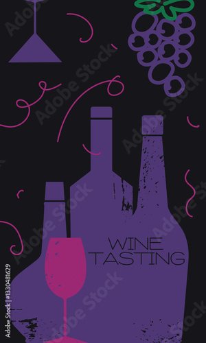 Paper cut red wine splash with grapes, bottle and wine glass silhouettes, vector illustration. Restaurant menu, poster, banner, flyer template.