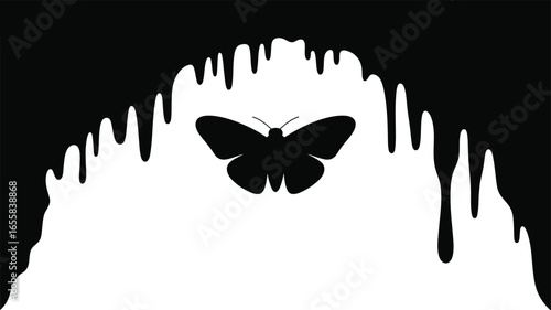 Paper cut craft style underwater sea cave with fishes and diver silhouette swimming with diving flashlight, vector illustration. Underwater world landscape. Scuba diving poster banner design template.