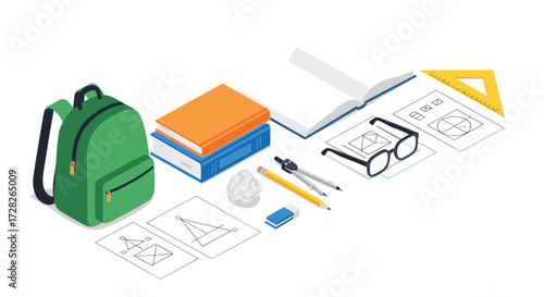 Paper recycling process scheme, vector isometric illustration. Reducing pollution and waste, saving the Earth and environment with recycling technologies.