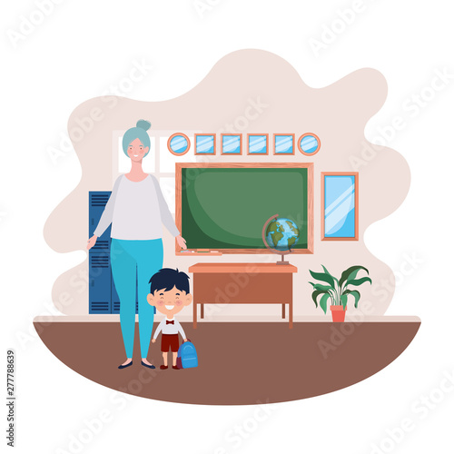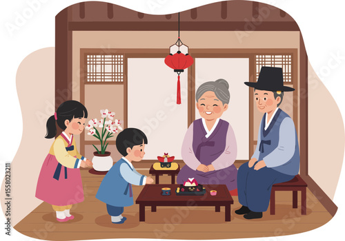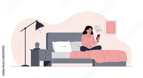 Happy loving mother combing her daughters hair, vector flat illustration. Happy childhood and motherhood, parental love and care for children, parent child relationship.