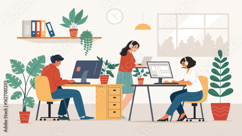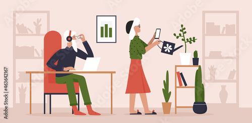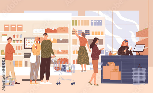 Passengers with luggage in airport waiting hall, flat vector illustration. People waiting for flight in departure lounge.