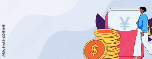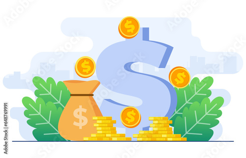 Passive income concept. Cartoon vector illustration. Wallet with dollar golden coins.