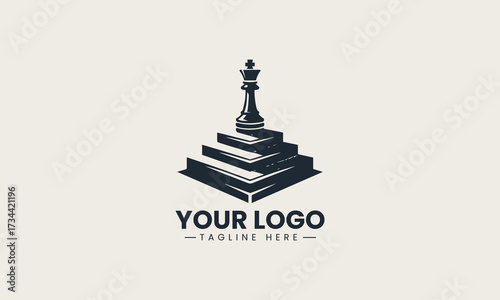 Vector polygonal art style stairway with pawn and king chess pieces. Low poly wireframe mesh. Path to success business concept poster banner design template with copy space.