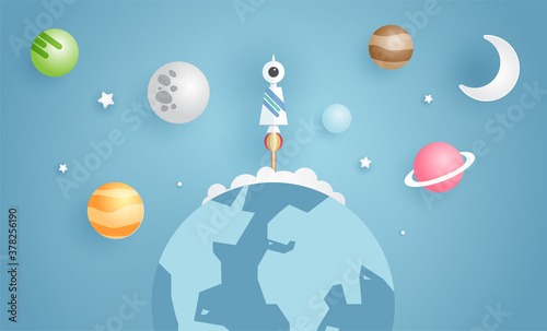 Businessman walking up stairway to target, vector illustration in layered paper art modern craft style. Path to success, business growth, career advancement concept.
