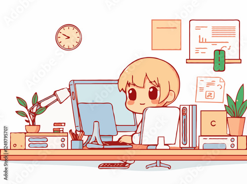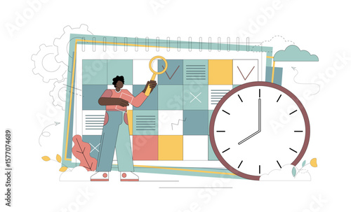 Pawnbroker, jeweller looking at luxury diamond gemstone standing at display counter with antique vases, gramophone, flat vector illustration. Pawn shop services.
