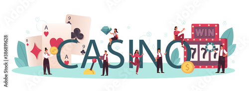 Pawnshop typography vector banner template. Pawn shop in big letters tiny characters expert appraising jewelry, pawnbroker lending money to customers in exchange for valuable things. Pawnshop services