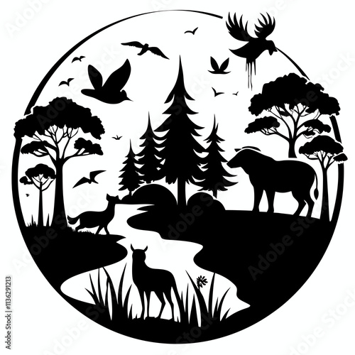 Pegasus, winged horse magical mythical fairy tale character silhouette, vector illustration. Fairytale composition in paper art craft style.