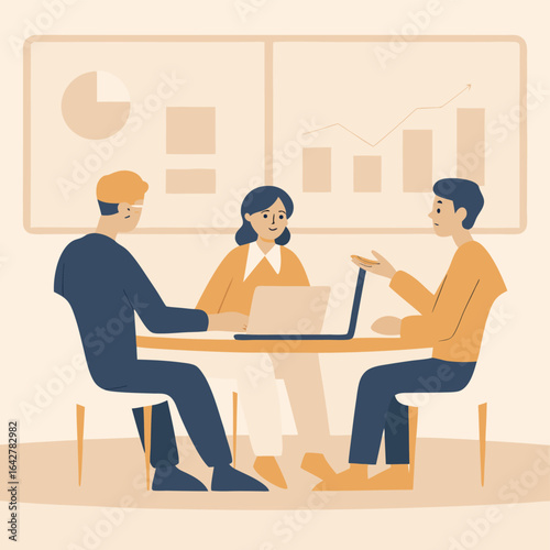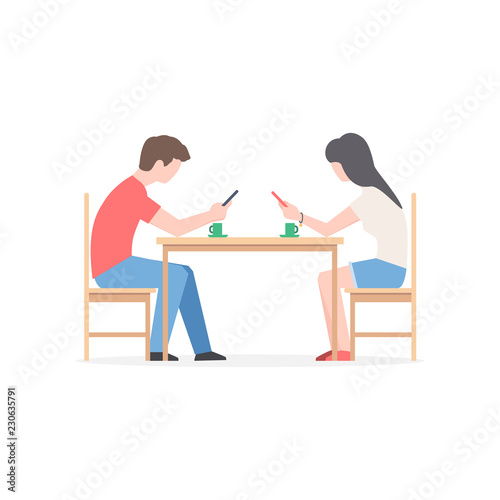 Pensive couple making decision, brainstorming and planning while sitting at table vector illustration. Male and female young family thinking and sharing ideas looking at blank paper sheet