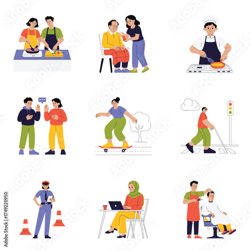 People and different pets isolated vector set. Male and female owner characters holding, embracing and caring for dog, cat, fish, parrot, chameleon and python illustration