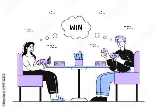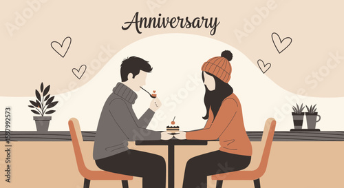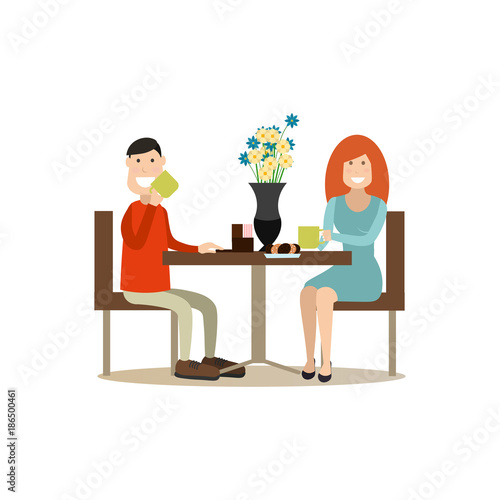 Vector illustration of loving couple in cafe or restaurant. People and relations concept flat style design element, icon isolated on white background.
