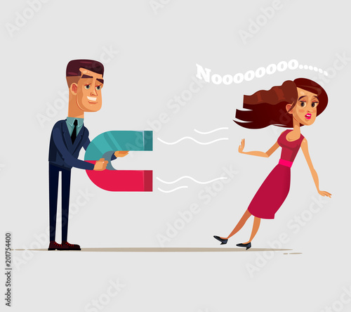 Vector illustration of man on one knee making proposal of marriage to his girlfriend. People and relations concept flat style design element, icon isolated on white background.