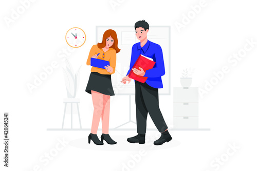 Happy family vector illustration. Father, mother, daughter and son walking together. People and relations concept flat style design element, icon isolated on white background.